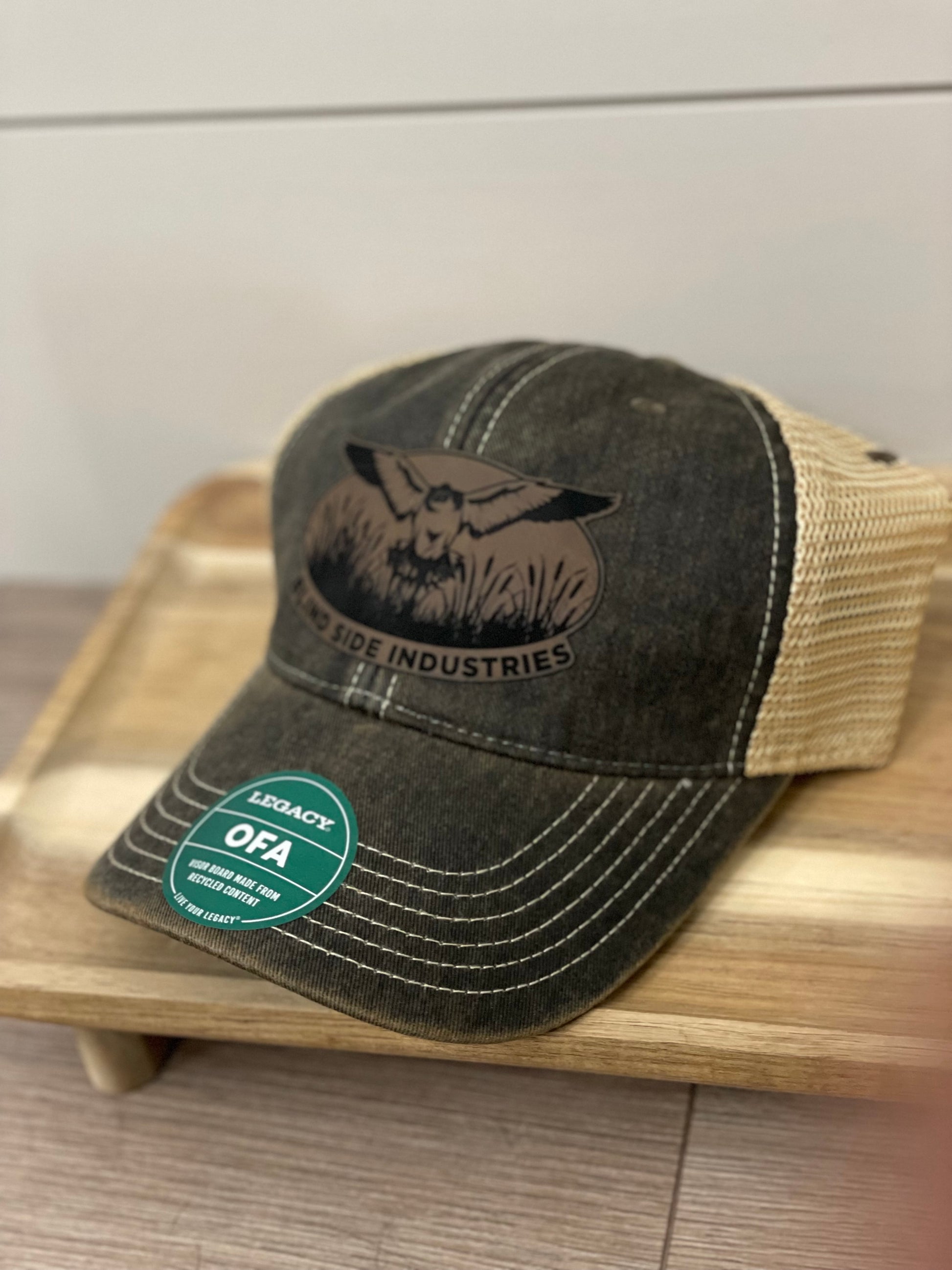 Unstructured, low-profile hat with full BSI logo on leatherette patch. Black vintage wash with khaki mesh. Adjustable back.